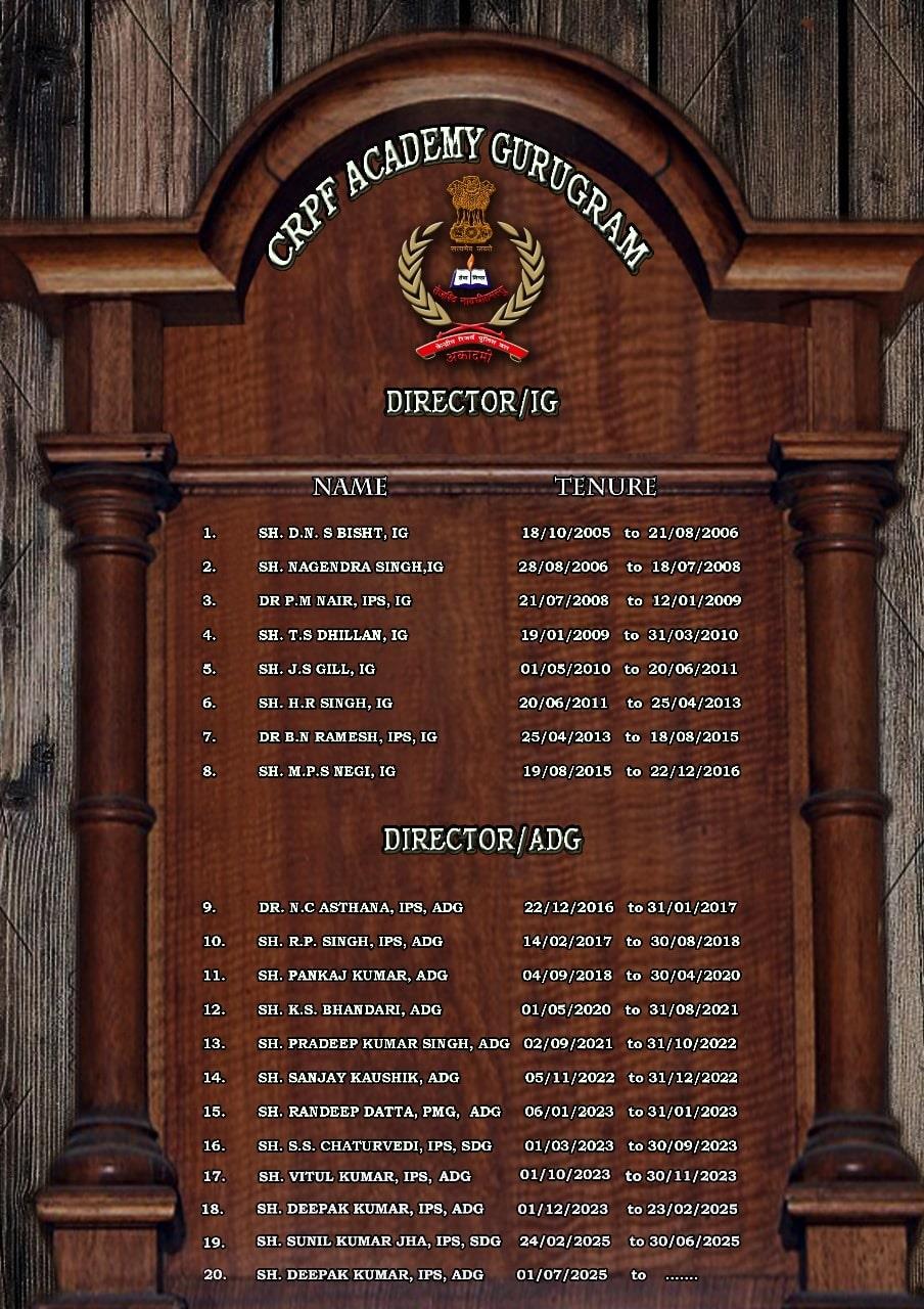 I am truly honoured to lead CRPF Academy Gurugram which is the cradle of leadership in CRPF. The CRPF Academy plays an important role in training officers who lead in various theatres to create constant saga of bravery and sacrifice in keeping the internal security grid dynamically strong. Our mission is vital to the Nation and CRPF because we are the institution that prepares and trains officers to meet current and future internal security challenges. Our purpose remains constantly focused upon grooming these officers in battle craft, managing human resources and combat logistics. In all these endeavors, we must continue to ensure that our officers get unparalleled training and also inculcated with CRPF values, traditions and warrior ethos.