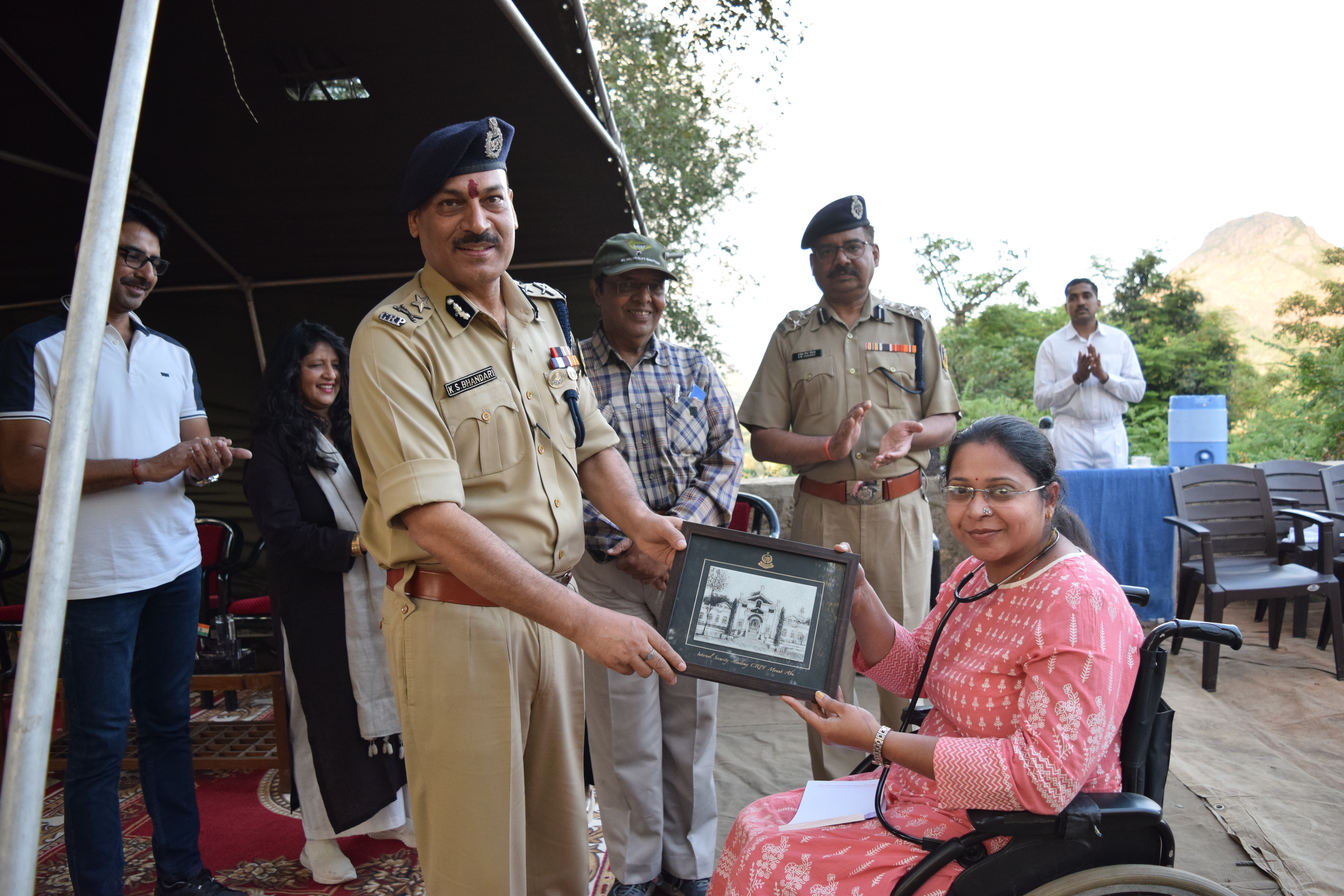 श्री के.एस. भंडारी, निदेशक/महानिरीक्षक, आंसुअ, केरिपुबल, आबू पर्वत, सिविक एक्शन कार्यक्रम को संबोधित करते हुए